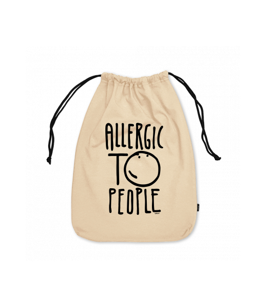 Small cotton pouch with design 1329 ALLERGIC TO PEOPLE in color CARAMEL