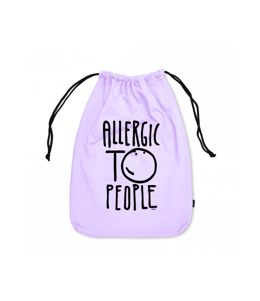 Small cotton pouch with design 1329 ALLERGIC TO PEOPLE in color LAVENDER