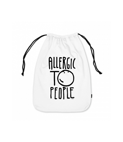 Small cotton pouch with design 1329 ALLERGIC TO PEOPLE in color WHITE
