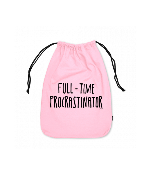 Small cotton pouch with design 1334 FULL-TIME PROCRASTINATOR in color BABY PINK