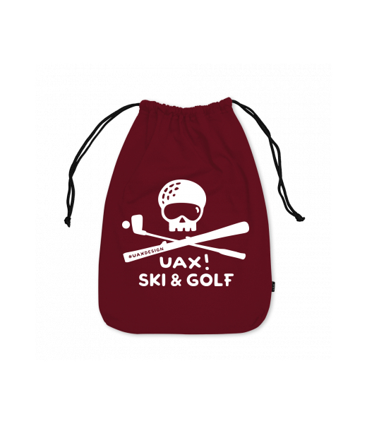 Small cotton pouch with design 1339 SKI AND GOLF in color DARK RED