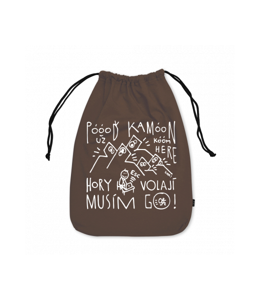 Small cotton pouch with design 1368 POOOĎ KAMOON HORY MUSÍM JÍT GO in color CHESTNUT