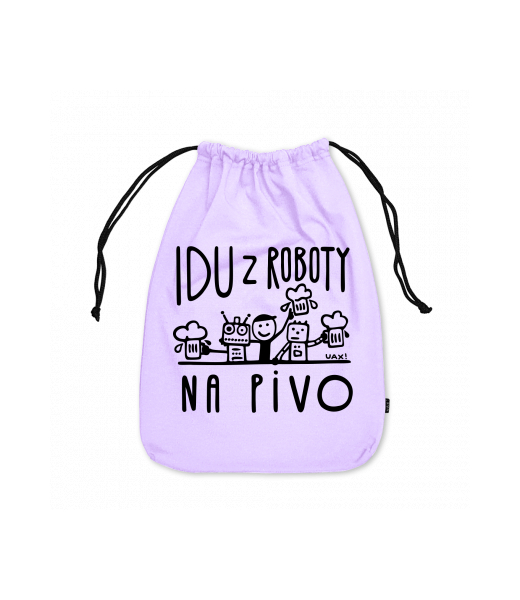 Small cotton pouch with design 1369 IDU Z ROBOTY NA PIVO in color LAVENDER