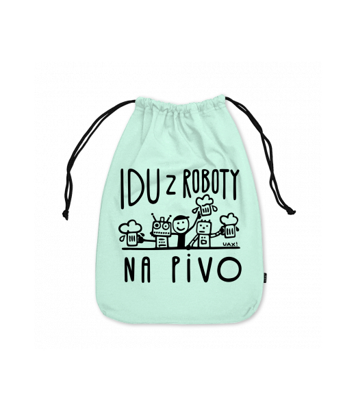 Small cotton pouch with design 1369 IDU Z ROBOTY NA PIVO in color MINT