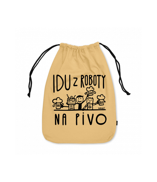 Small cotton pouch with design 1369 IDU Z ROBOTY NA PIVO in color MUSTARD