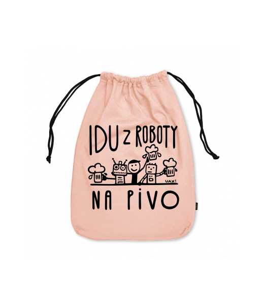 Small cotton pouch with design 1369 IDU Z ROBOTY NA PIVO in color PEACH