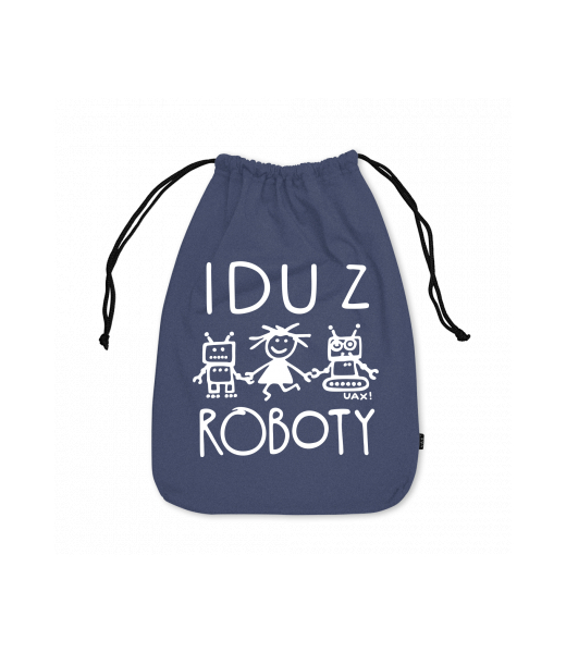 Small cotton pouch with design 1370 IDU Z ROBOTY in color JEANS