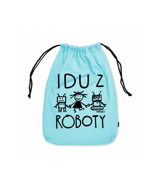 Small cotton pouch with design 1370 IDU Z ROBOTY in color PASTEL BLUE