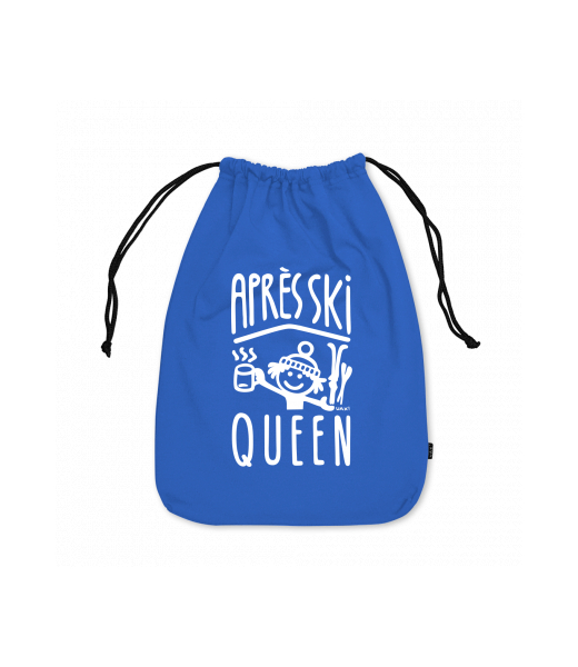 Small cotton pouch with design 1371 APRÉS SKI QUEEN in color ROYAL BLUE