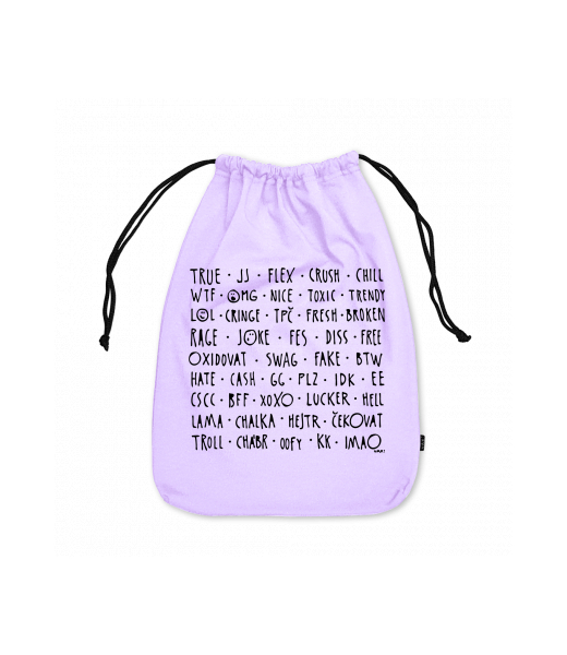 Small cotton pouch with design 1372 DĚTSKÝ SLANG in color LAVENDER