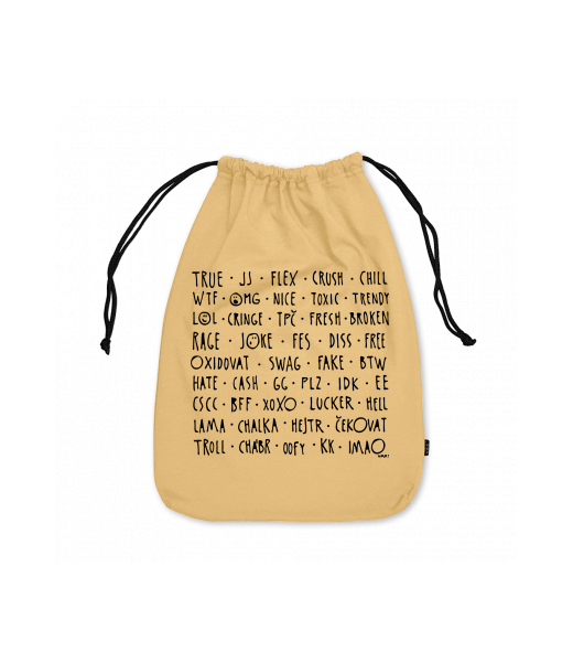 Small cotton pouch with design 1372 DĚTSKÝ SLANG in color MUSTARD