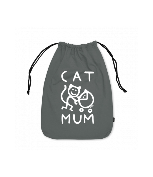 Small cotton pouch with design 1375 CAT MUM in color DARK GRAY
