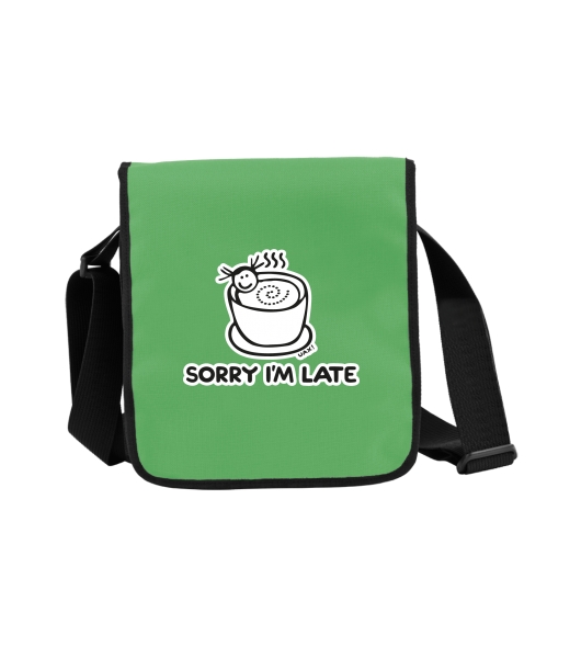 Bag TASPRA small with design 1087 SORRY IM LATE in color BRIGHT GREEN