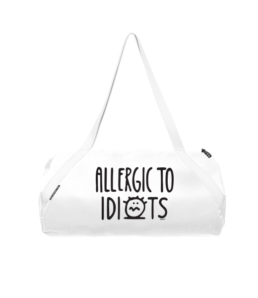 Kortexin sports bag SPORTS BAG choice of printing. with design 1354 ALLERGIC TO IDIOTS in color WHITE