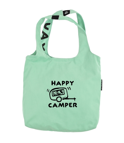 SUMMER BAG bag with printing with design 1116 HAPPY CAMPER in color PISTACHIO GREEN