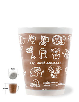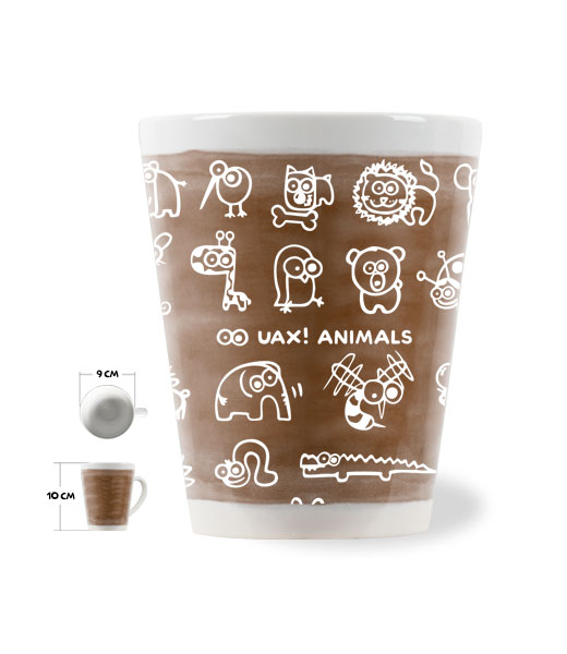 The original children's mug with an ear with a volume of 0.25L with the original UAX Animals print will become a stylish accessory for your homes. We produce the 0.25L children's mug by first printing an original print on transfer paper on a Mimaki TS5 machine and then sublimating using a sublimation press. We print on mugs with spec. surface treatment for printing, when the basic color of the mug is white.