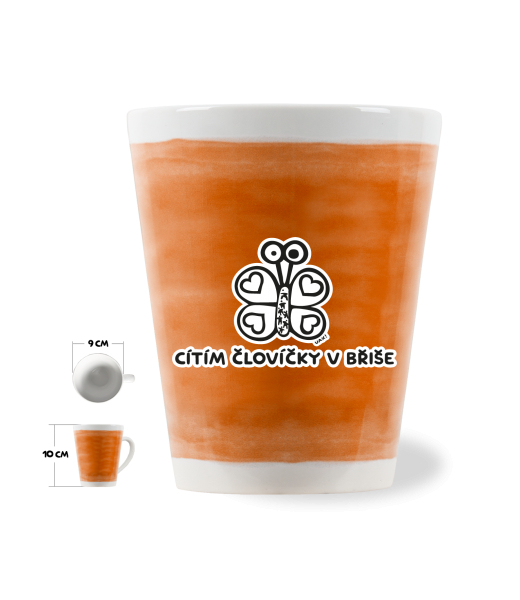 The original LATTE CUP UAX! a volume of 0.25L with design with design 1188 CÍTÍM ČLOVÍČKY V BŘIŠE in color SIGNAL ORANGE