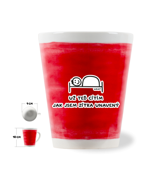 The original LATTE CUP UAX! a volume of 0.25L with design with design 1200 UŽ TEĎ CÍTÍM JAK JSEM ZÍTRA UNAVENÝ in color CHILLY PEPPER RED