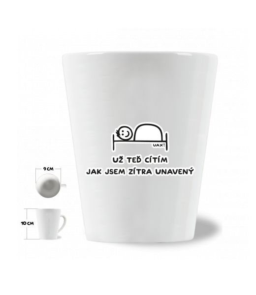 We make sustainable UAX clothing! - hand sewn in the Czech Republic uaxAccessories uaxAll productsCups and mugsLATTE CUP 0.25Ldesign 1200 - UŽ TEĎ CÍTÍM JAK JSEM ZÍTRA UNAVENÝWHITE