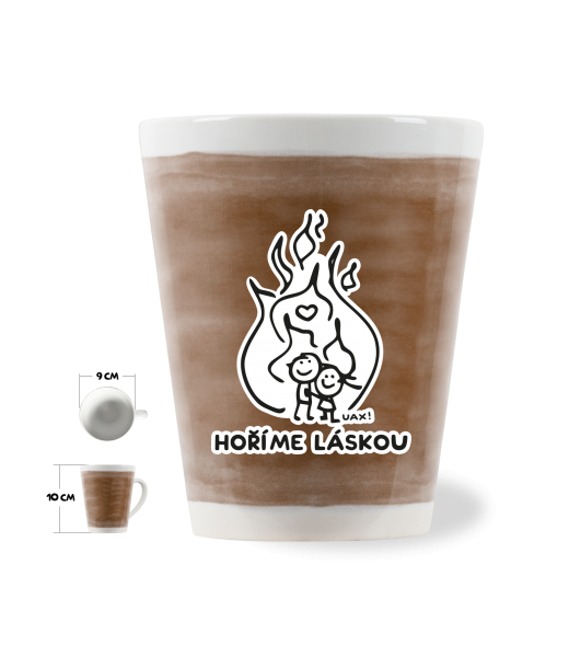 The original LATTE CUP UAX! a volume of 0.25L with design with design 1208 HOŘÍME LÁSKOU in color BROWN SUGAR