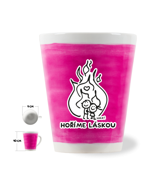The original LATTE CUP UAX! a volume of 0.25L with design with design 1208 HOŘÍME LÁSKOU in color INDIAN LILA