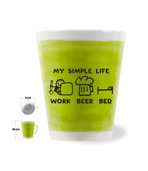 We make sustainable UAX clothing! - hand sewn in the Czech Republic uaxAccessories uaxAll productsCups and mugsLATTE CUP 0.25Ldesign 1211 - MY SIMPLE LIFE WORK BEER BEDGREEN LIMET