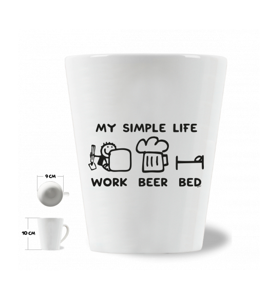 We make sustainable UAX clothing! - hand sewn in the Czech Republic uaxAccessories uaxAll productsCups and mugsLATTE CUP 0.25Ldesign 1211 - MY SIMPLE LIFE WORK BEER BEDWHITE