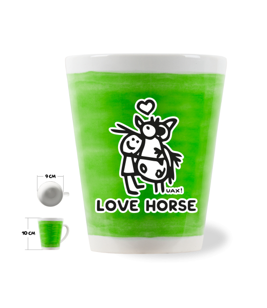 We make sustainable UAX clothing! - hand sewn in the Czech Republic uaxAccessories uaxAll productsCups and mugsLATTE CUP 0.25Ldesign 1219 - LOVE HORSEPARROT GREEN