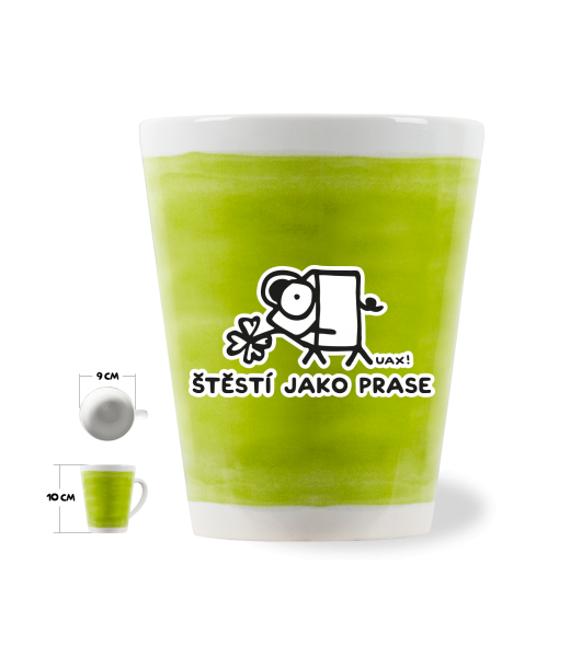 We make sustainable UAX clothing! - hand sewn in the Czech Republic uaxAccessories uaxAll productsCups and mugsLATTE CUP 0.25Ldesign 1220 - ŠTĚSTÍ JAKO PRASEGREEN LIMET
