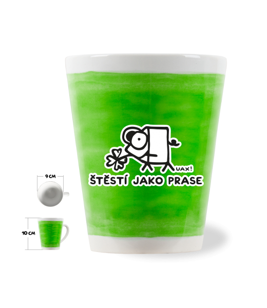 We make sustainable UAX clothing! - hand sewn in the Czech Republic uaxAccessories uaxAll productsCups and mugsLATTE CUP 0.25Ldesign 1220 - ŠTĚSTÍ JAKO PRASEPARROT GREEN