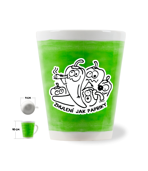 We make sustainable UAX clothing! - hand sewn in the Czech Republic uaxAccessories uaxAll productsCups and mugsLATTE CUP 0.25Ldesign 1245 - ZHULENÍ JAK PAPRIKYPARROT GREEN