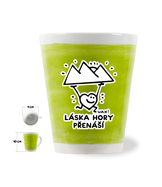 We make sustainable UAX clothing! - hand sewn in the Czech Republic uaxAccessories uaxAll productsCups and mugsLATTE CUP 0.25Ldesign 1264 - LÁSKA HORY PŘENÁŠÍGREEN LIMET