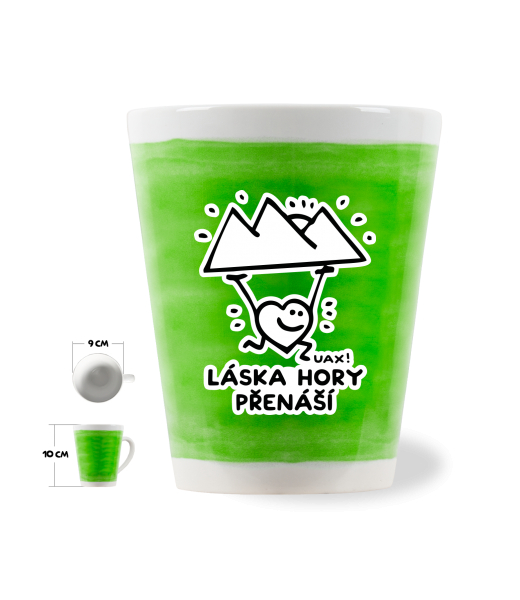 We make sustainable UAX clothing! - hand sewn in the Czech Republic uaxAccessories uaxAll productsCups and mugsLATTE CUP 0.25Ldesign 1264 - LÁSKA HORY PŘENÁŠÍPARROT GREEN