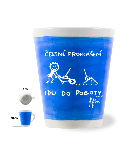 The original LATTE CUP UAX! a volume of 0.25L with design with design 1303 ČESTNÉ PROHLÁŠENÍ IDU DO ROBOTY in color DARK BLUE