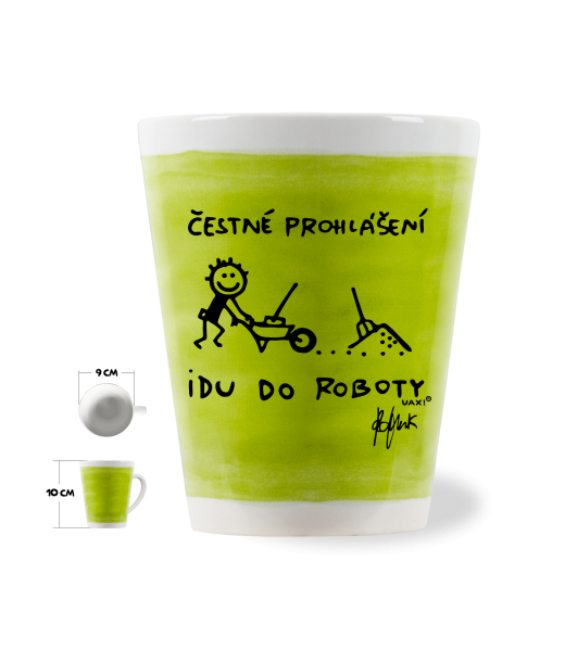 The original LATTE CUP UAX! a volume of 0.25L with design with design 1303 ČESTNÉ PROHLÁŠENÍ IDU DO ROBOTY in color GREEN LIMET