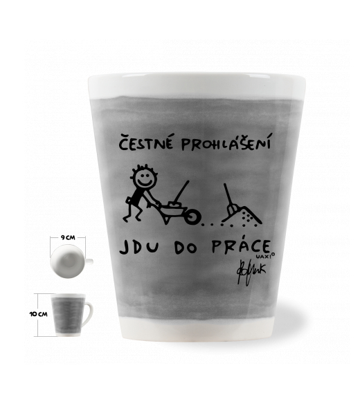 The original LATTE CUP UAX! a volume of 0.25L with design with design 1304 ČESTNÉ PROHLÁŠENÍ JDU DO PRÁCE in color GRAY