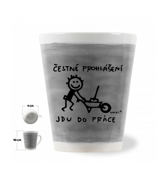 The original LATTE CUP UAX! a volume of 0.25L with design with design 1305 ČESTNÉ PROHLÁŠENÍ JDU DO PRÁCE 2 in color GRAY