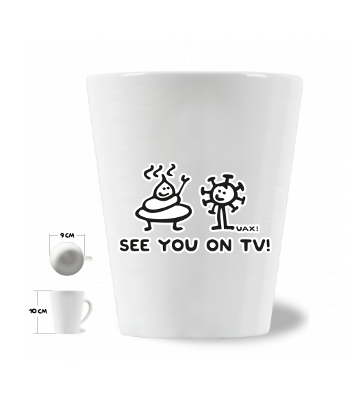 We make sustainable UAX clothing! - hand sewn in the Czech Republic uaxAccessories uaxAll productsCups and mugsLATTE CUP 0.25Ldesign 1306 - SEE YOU ON TVWHITE