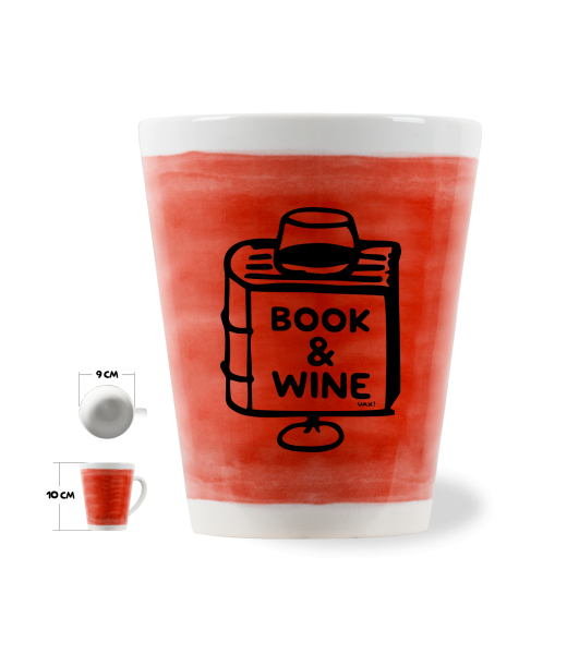 The original LATTE CUP UAX! a volume of 0.25L with design with design 1322 BOOK AND WINE in color TOMATO