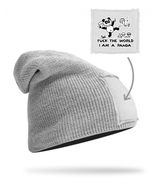 We make sustainable UAX clothing! - hand sewn in the Czech Republic uaxAccessories uaxAll productsHats and HeadbandsKNITTED HAT BEANIEdesign 1060 - I AM A PANDAGREY/WHITE
