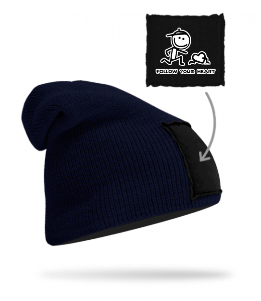 We make sustainable UAX clothing! - hand sewn in the Czech Republic uaxAccessories uaxAll productsHats and HeadbandsKNITTED HAT BEANIEdesign 1063 - FOLOW YOUR HEARTDARK NAVY/BLACK