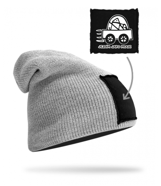 We make sustainable UAX clothing! - hand sewn in the Czech Republic uaxAccessories uaxAll productsHats and HeadbandsKNITTED HAT BEANIEdesign 1072 - JEZDÍM JAKO PRASEGREY/BLACK