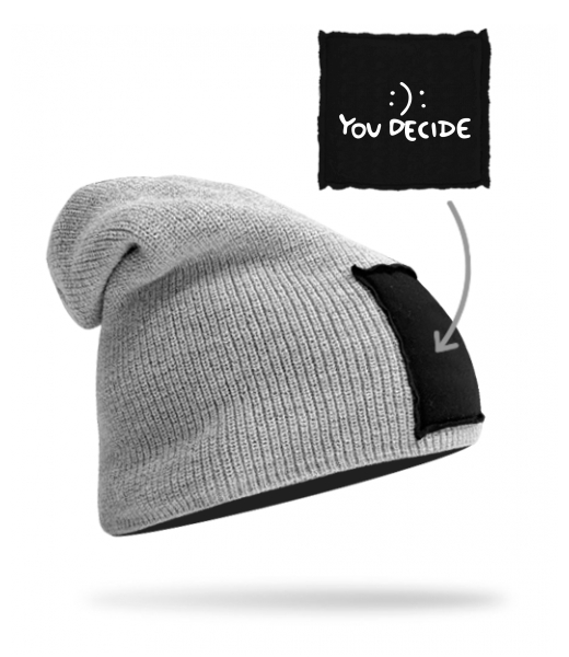 Quality knitted hat BEANIE unisex with design 1078 YOU DECIDE in color GREY/BLACK