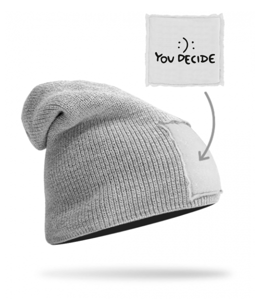 Quality knitted hat BEANIE unisex with design 1078 YOU DECIDE in color GREY/WHITE