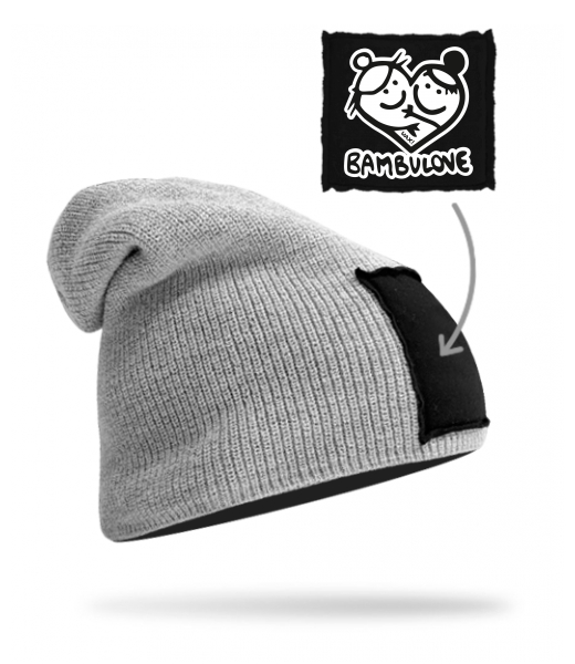 Quality knitted hat BEANIE unisex with design 1079 BAMBULOVE in color GREY/BLACK