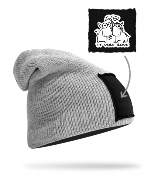 We make sustainable UAX clothing! - hand sewn in the Czech Republic uaxAccessories uaxAll productsHats and HeadbandsKNITTED HAT BEANIEdesign 1089 - TY VOLE I LOVEGREY/BLACK