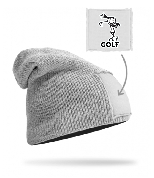 Quality knitted hat BEANIE unisex with design 1092 GOLF in color GREY/WHITE