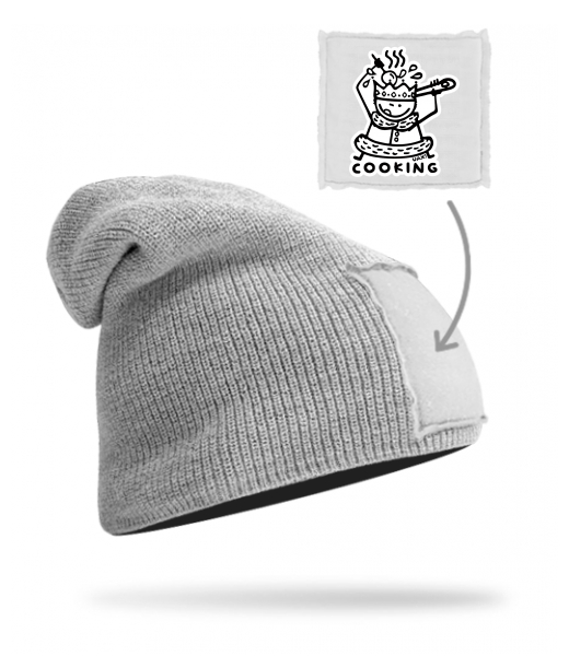 We make sustainable UAX clothing! - hand sewn in the Czech Republic uaxAccessories uaxAll productsHats and HeadbandsKNITTED HAT BEANIEdesign 1117 - COOKINGGREY/WHITE