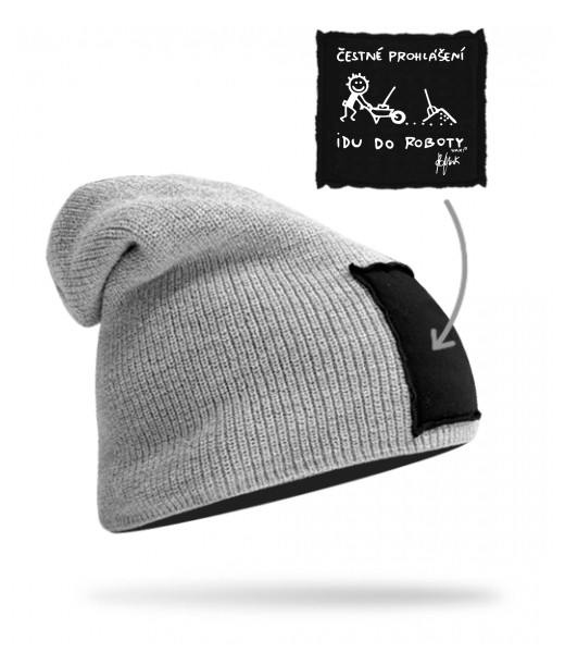 Quality knitted hat BEANIE unisex with design 1303 ČESTNÉ PROHLÁŠENÍ IDU DO ROBOTY in color GREY/BLACK