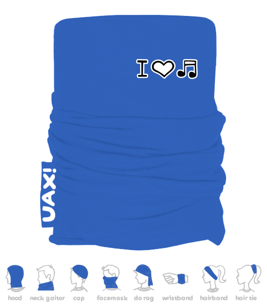 We make sustainable UAX clothing! - hand sewn in the Czech Republic uaxAccessories uaxAll productsMultifunctional scarvesMULTIFUNCTION COTTON SCARFdesign 1067 - I LOVE MUSICROYAL BLUE